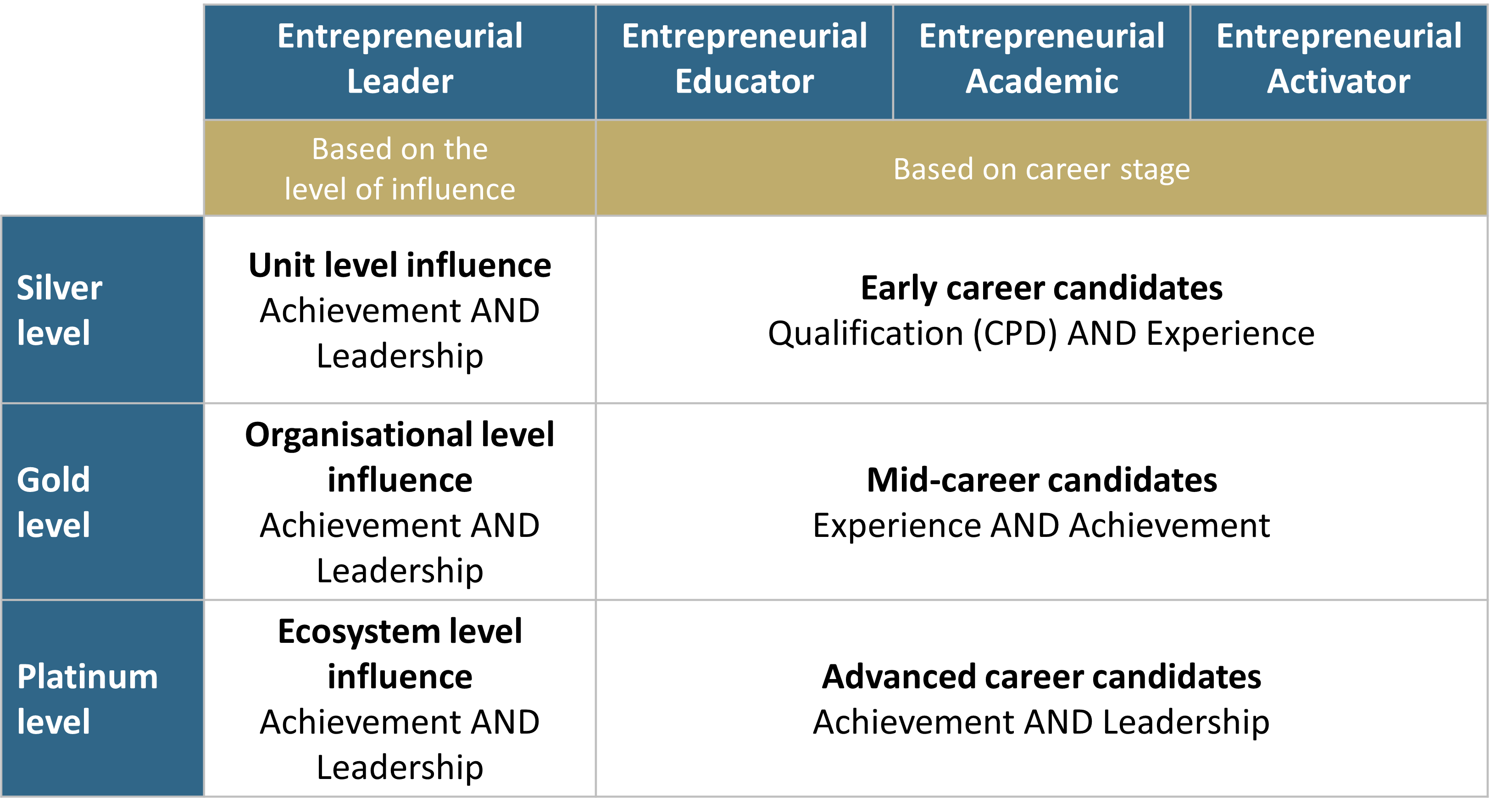 Apply nowClick MeApply nowOur certification categories cover the various roles in higher education entrepreneurship.