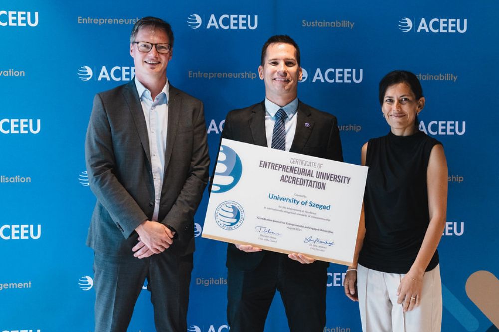 The ACEEU recognition commended SZTE’s strong position in international alliances, particularly as a founding member of the European University Alliance for Global Health (EUGLOH), its commitment to interdisciplinary research through its Centre of Excellence for Interdisciplinary Research, Development and Innovation, and its forward-looking VIRTUS Career Program, which guides ideas from basic research to market utilisation. The university’s role in developing the Science Park Szeged around the world-class ELI-ALPS Laser Research Institute was also highlighted as an example of its leadership in building bridges between science, industry, and society.