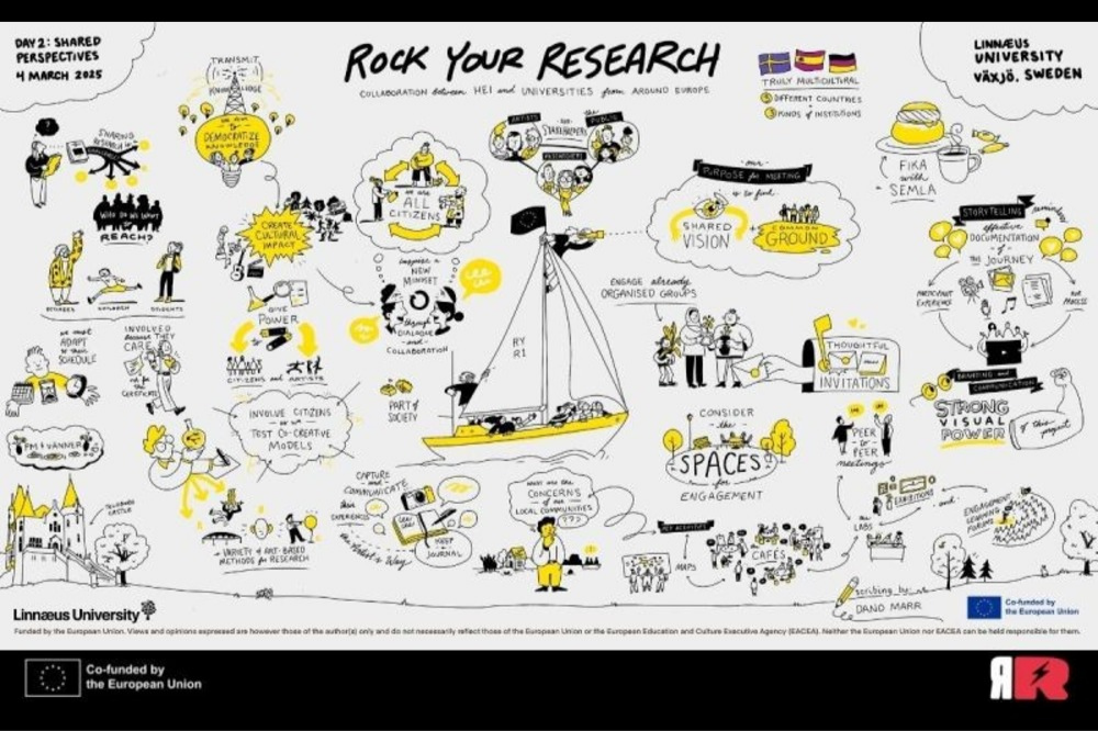 The Rock Your Research project officially launched with its first partner meeting in Växjö, Sweden, hosted by Linnaeus University. Partners from Sweden, Spain, and Germany came together to lay the foundation for a bold new initiative that reimagines how research and art connects with society.