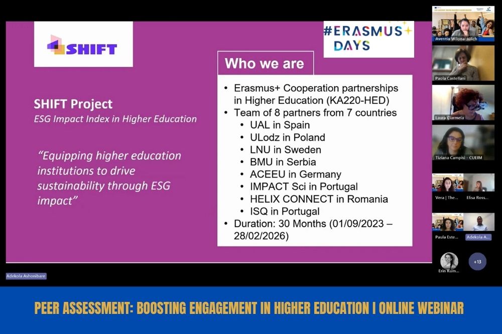 On 14 October 2025, ACEEU, together with the PeerCollab Erasmus+ Project and its partners Francisco de Vitoria University (UFV), University Consortium for Industrial and Managerial Economics (CUEIM), The Square Dot Team (TSDT), and University of Lodz (UoL), hosted a webinar to mark the 2025 #ErasmusDays. The session focused on boosting student engagement in higher education.