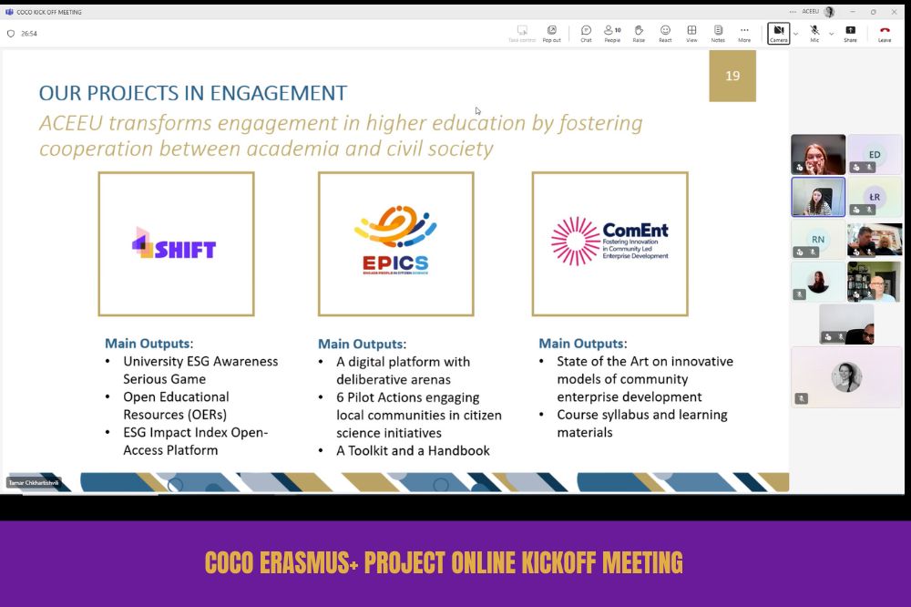 On 8 October 2025, the COCO (Collaboration Compass) Erasmus+ project officially kicked off with an online meeting attended by 10 academics and higher education professionals from across the consortium, including representatives from Adam Mickiewicz University in Poznań, Aalborg University, University of Camerino, PISOP Centre Association, Poland, and ACEEU.