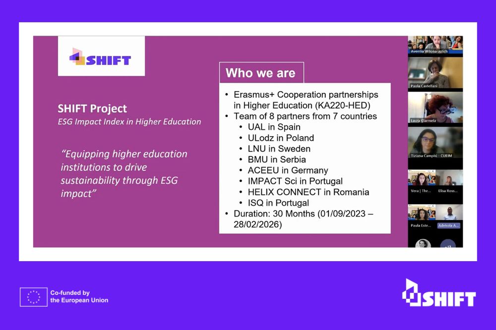 ACEEU continues to raise awareness of how higher education institutions (HEIs) can contribute to the Sustainable Development Goals (SDGs) by introducing and promoting the SHIFT Project within its network. Building on this effort, ACEEU had the opportunity to showcase SHIFT as one of its projects fostering engagement in higher education during the online kickoff meeting of its newest initiative, Collaboration Compass: Fostering Innovation-Driven Cooperation between HEIs, NGOs, and CSOs (COCO). The COCO project promotes cooperation between HEIs and NGOs/CSOs to address social and environmental challenges through innovative, interdisciplinary collaboration.